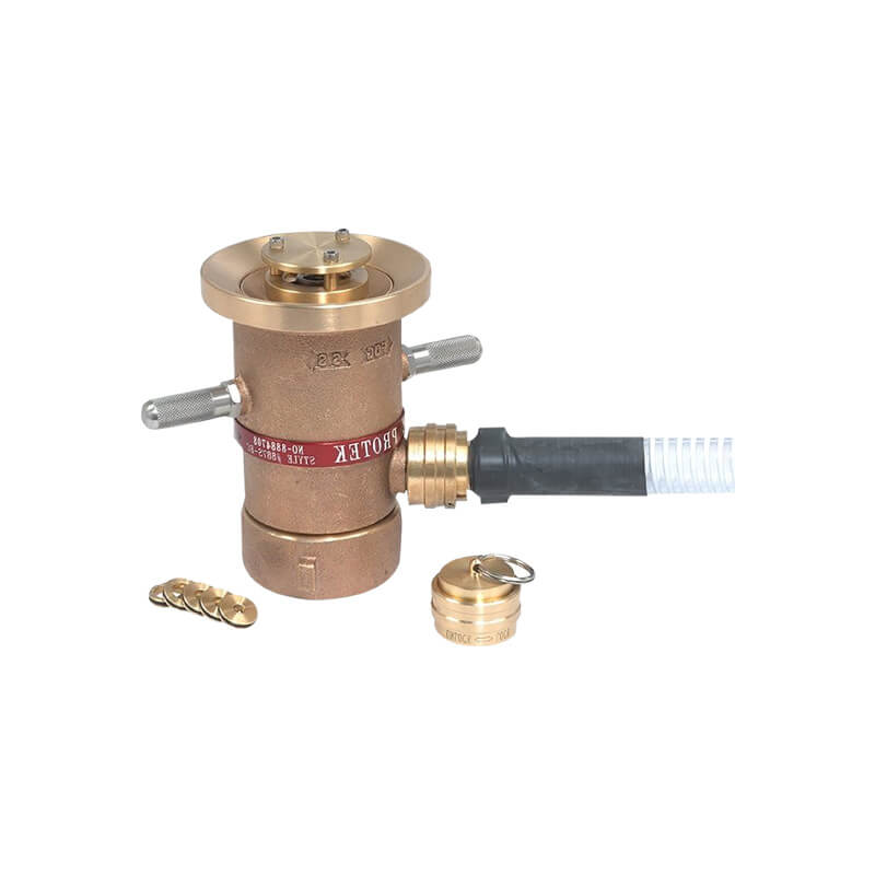 The Adjustable Flow Self-Inducting Foam Monitor Nozzle (Brass) features a robust brass body and a spring-loaded baffle at the tip, allowing on-site adjustment of foam solution flow rate. With a built-in eductor and pick-up tube, it self-inducts foam concentrate into a pressurized water stream, ensuring efficient foam generation across a range of fire scenarios.