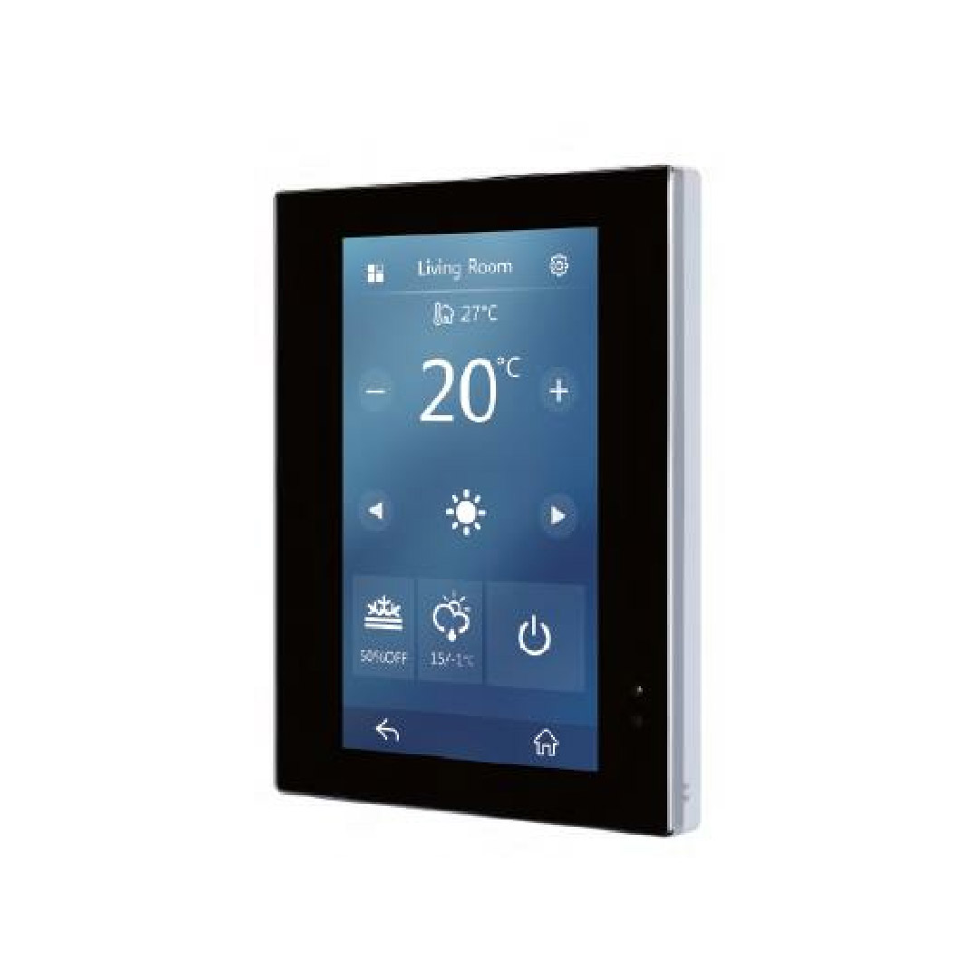 Enviro is a sleek touch-control panel featuring a 4.3-inch display that lets you effortlessly manage lighting, curtains, HVAC, music, and more through an intuitive graphic user interface. Control your environment with just a simple touch.
