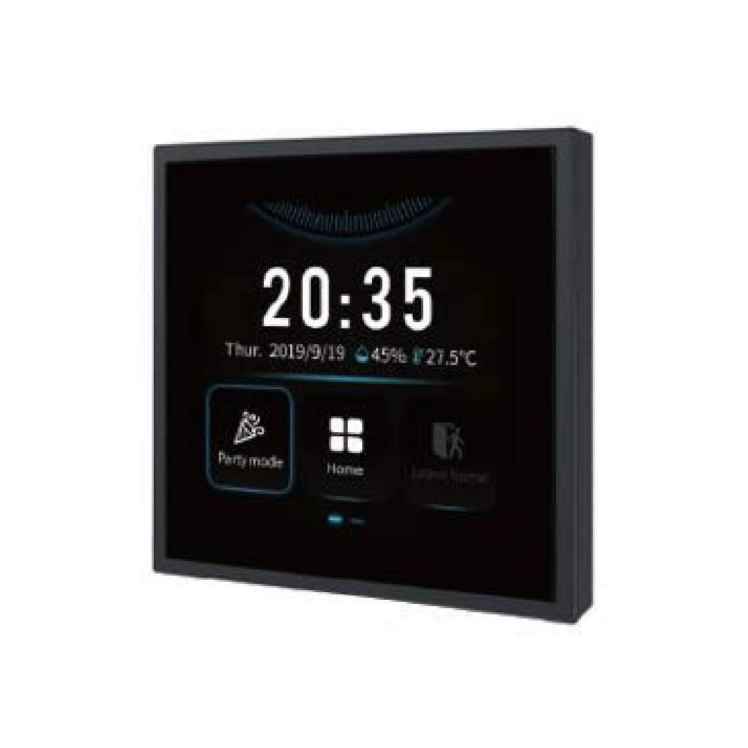 The Tile Display is a multifunctional home automation control panel featuring a 3.5-inch LCD touchscreen. It provides intuitive full-screen touch control for managing lighting, curtains, scenes, air conditioning, floor heating, music, and fresh air.
